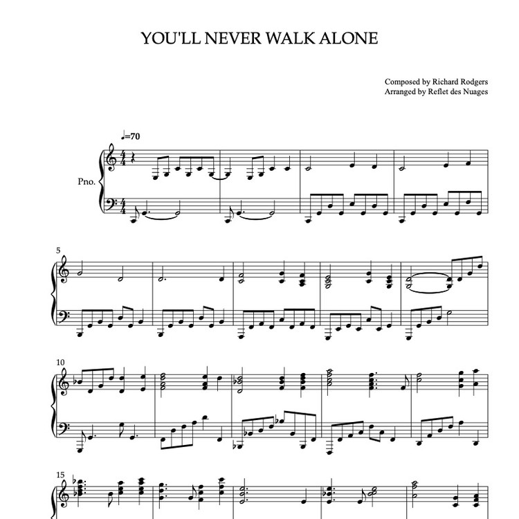 Carousel You'll Never Walk Alone, Partitura para piano solo