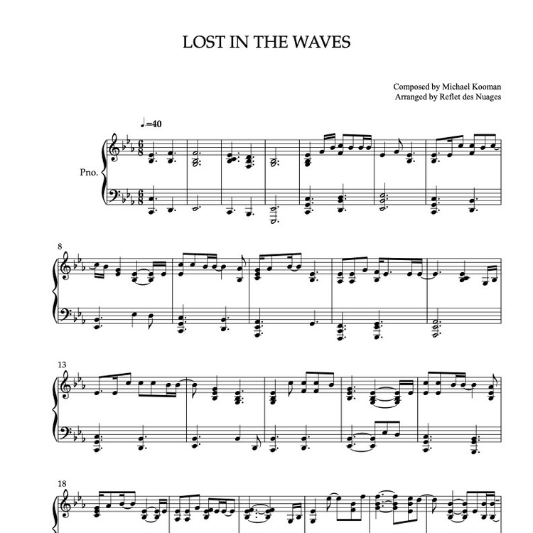 Kooman & Dimond Lost in the Waves, Partitura para piano solo