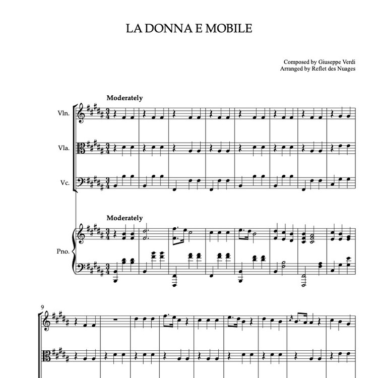 [PARTITURA PARA CUARTETO] La donna e mobile - Música de cámara para violín, viola, violonchelo y piano