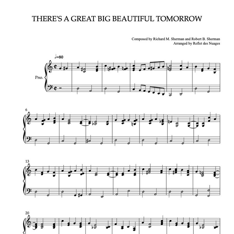There’s a Great Big Beautiful Tomorrow, Partitura para piano solo