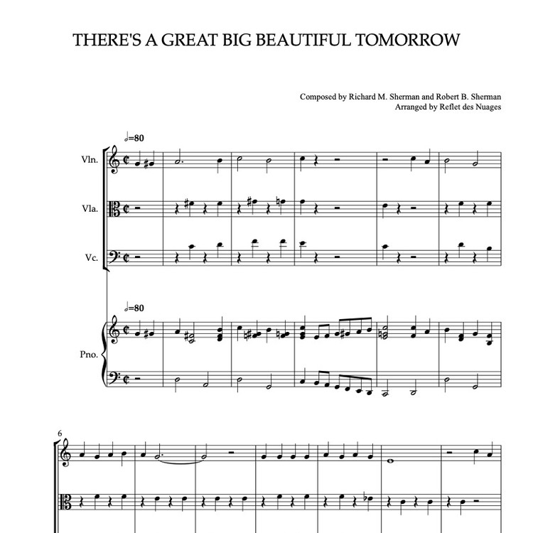[PARTITURA PARA CUARTETO] There’s a Great Big Beautiful Tomorrow - Música de cámara para violín, viola, violonchelo y piano