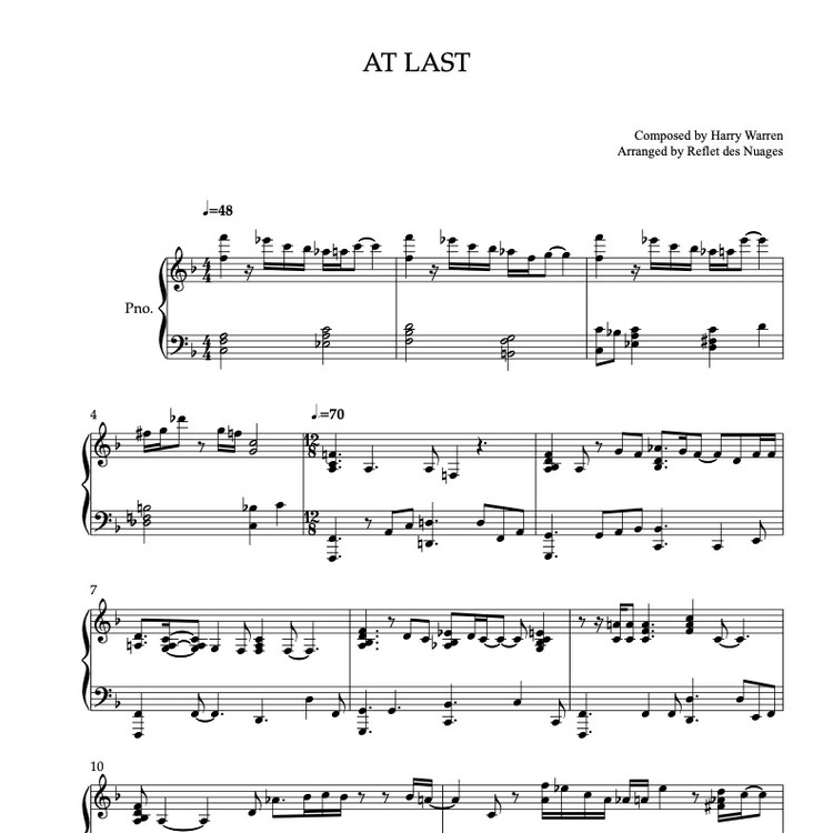 [PARTITURA PARA PIANO SOLO] At Last(Etta James)VENTA